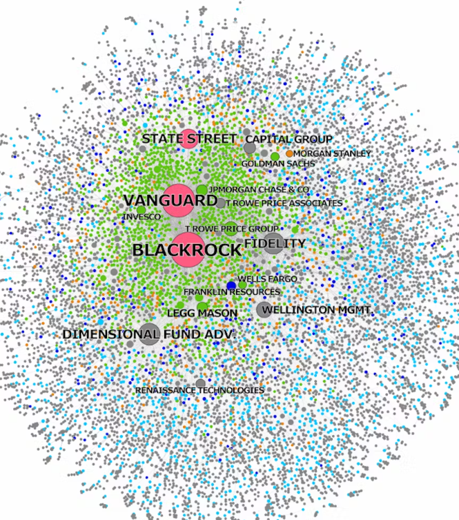A BlackRock ($12T AUM) mellett a Vanguard ($9T AUM) és a State Street ($4.5T AUM) a legnagyobb globális vagyonkezelési entitások (AUM = Asset Under Management = Kezelt vagyon). Ők a befektetési világ legbefolyásosabb triumvirátusa. Gyakran mindhárom tulajdonosa ugyanannak a vállalatnak. Ez a rendkívül koncentrált tulajdonosi struktúra több versenyjogi kérdést is felvet.