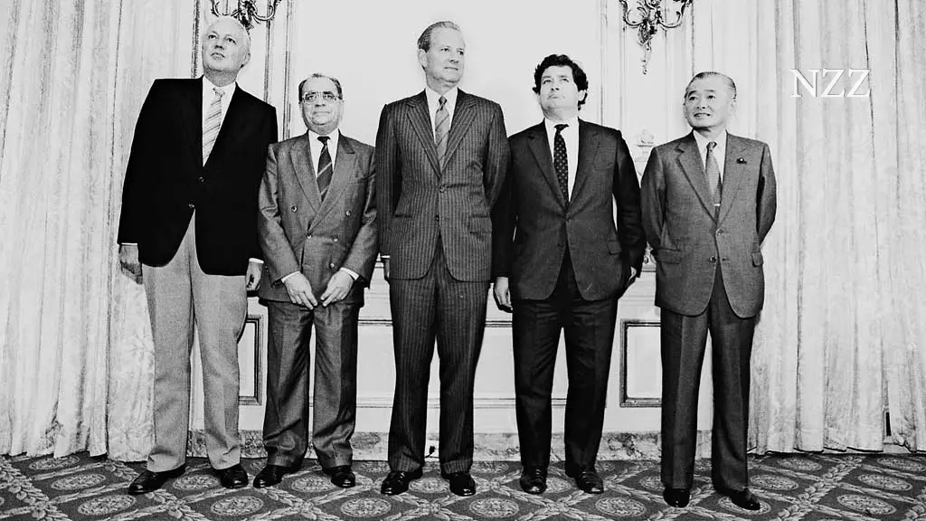 1985. szeptermber 22-én kötött nemzetközi pénzügyi megállapodás volt az 5 nagy fejlett ország (G5) között. Név szerint: USA – Ronald